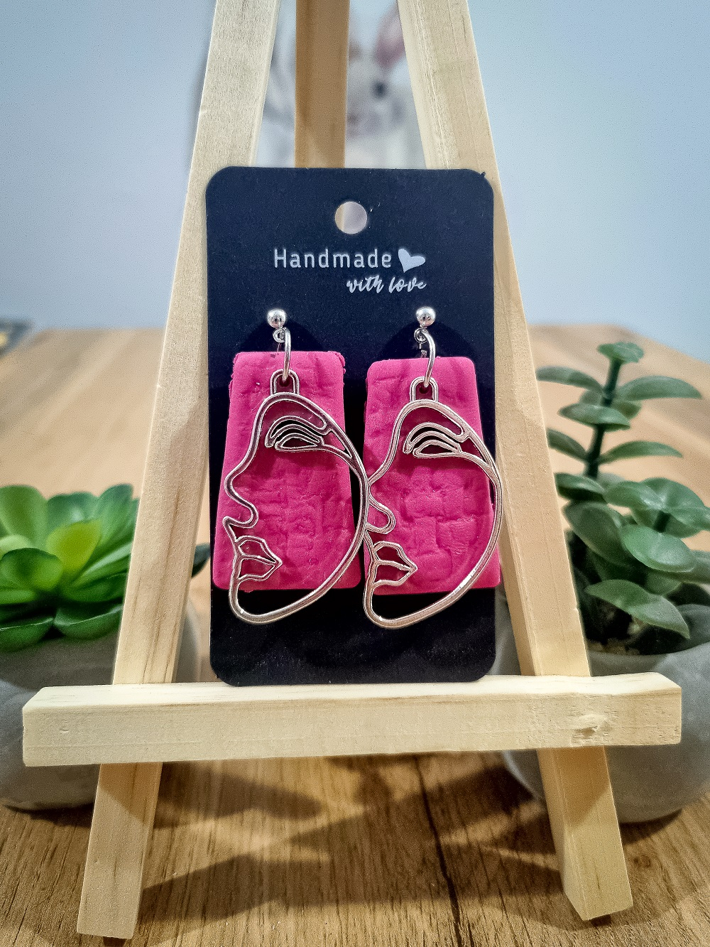 Cercei unicat confecționați din lut polimeric FIMO și accesorii metalice hipoalergenice.