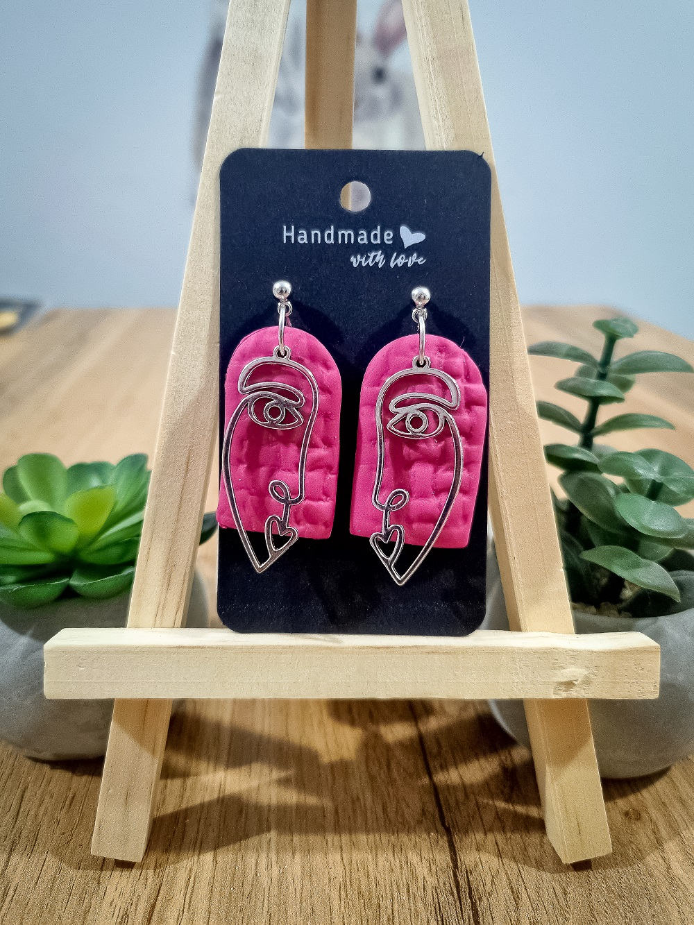 Cercei unicat confecționați din lut polimeric FIMO și accesorii metalice hipoalergenice.