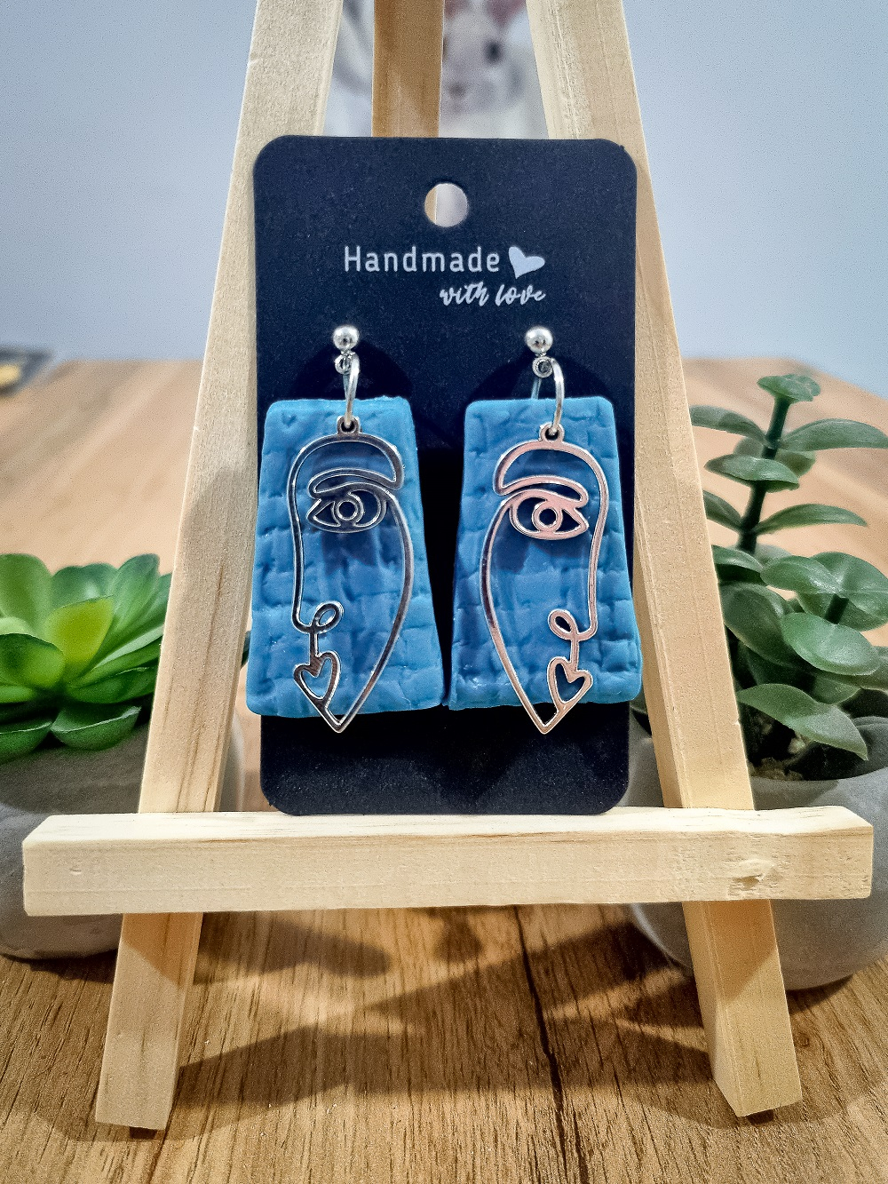 Cercei unicat confecționați din lut polimeric FIMO și accesorii metalice hipoalergenice.