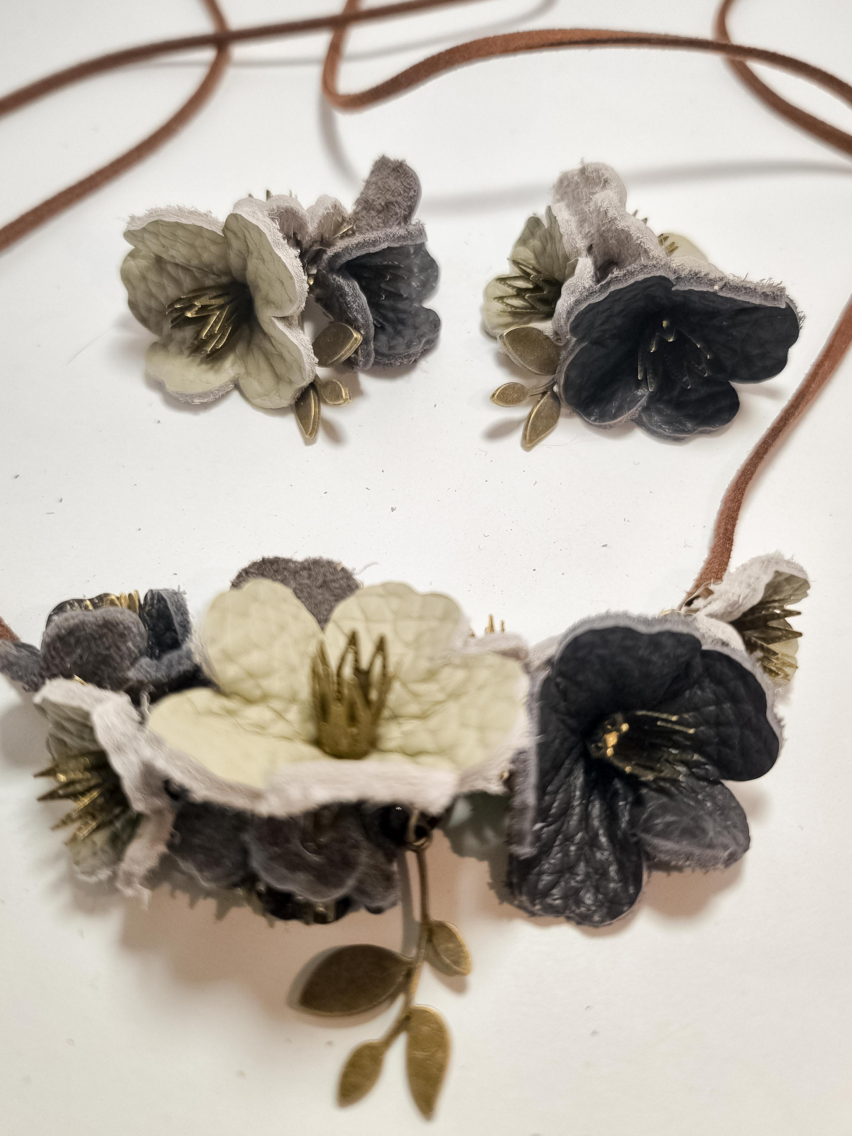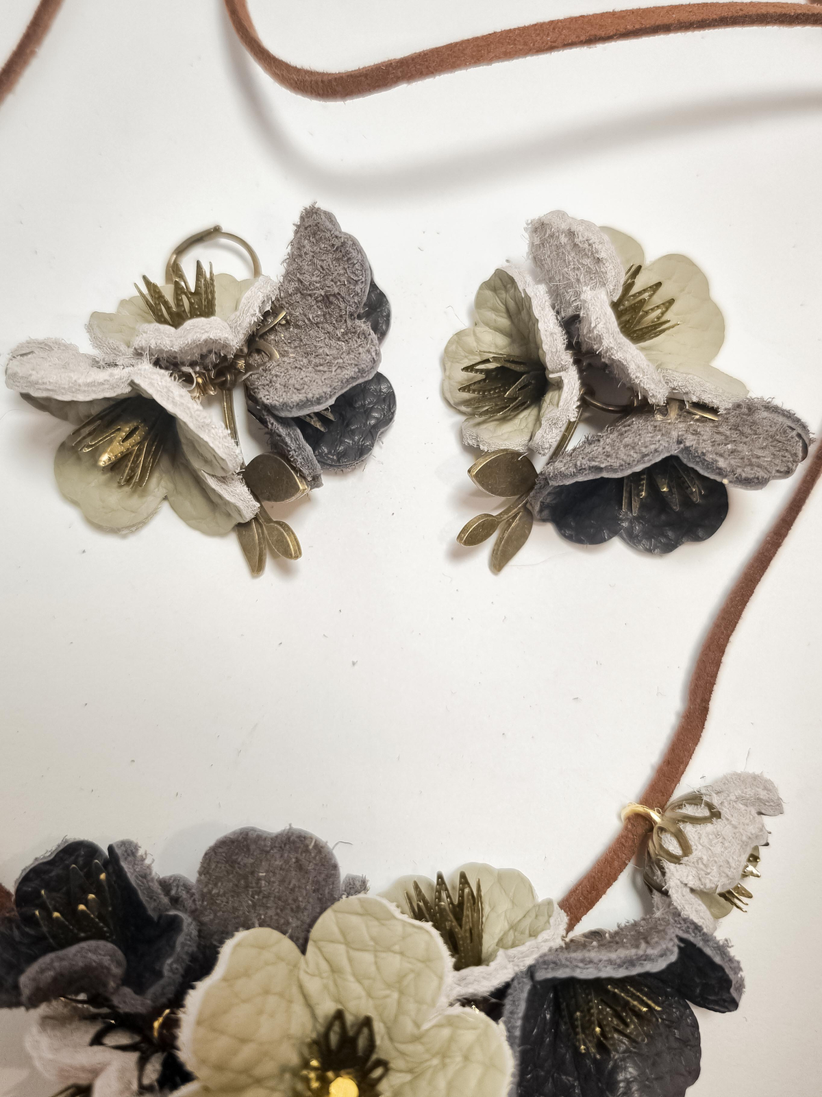 Cercei unicat confecționați din piele naturala și accesorii metalice hipoalergenice.