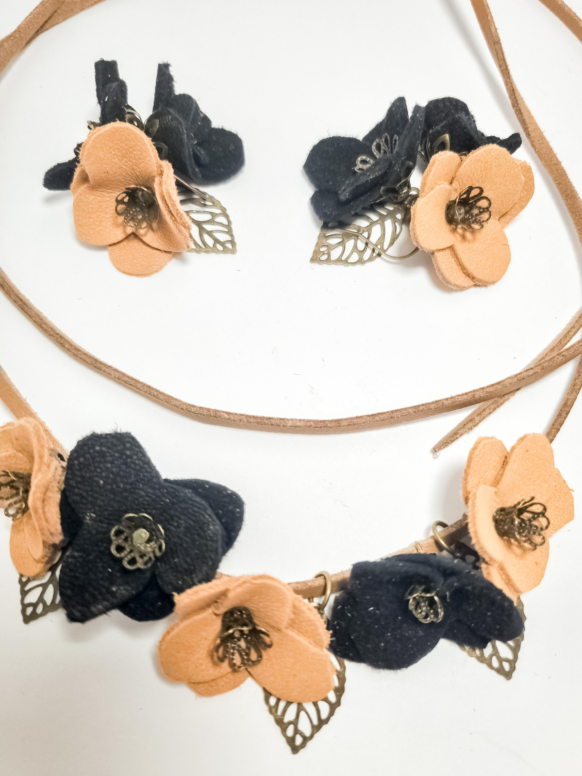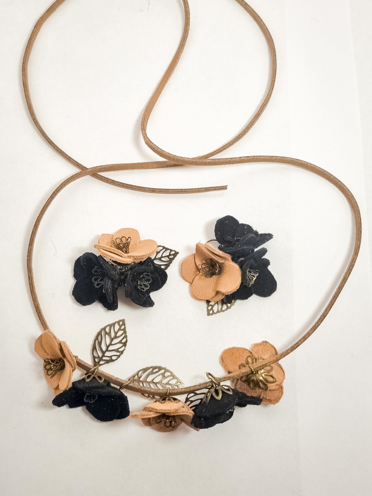 Cercei unicat confecționați din piele naturala și accesorii metalice hipoalergenice.