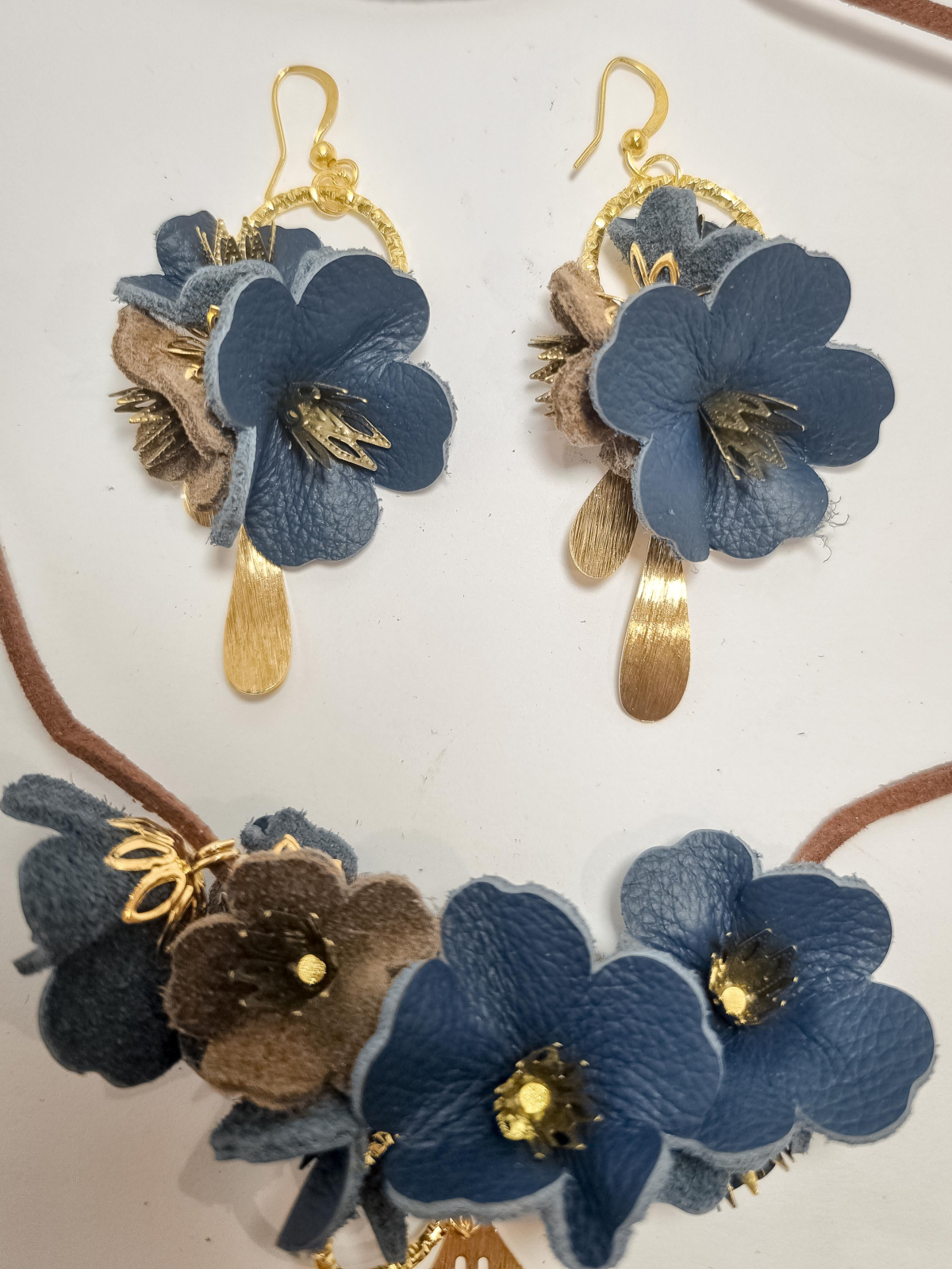 Cercei unicat confecționați din piele naturala și accesorii metalice hipoalergenice.