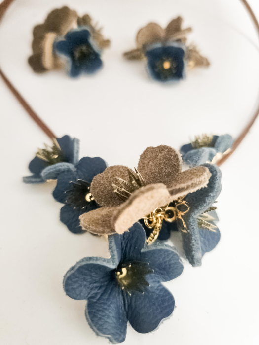 Cercei unicat confecționați din piele naturala și accesorii metalice hipoalergenice.