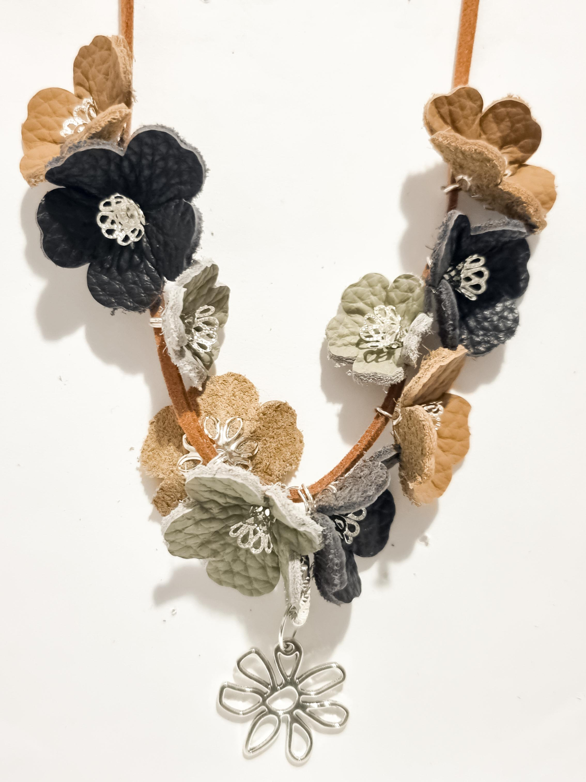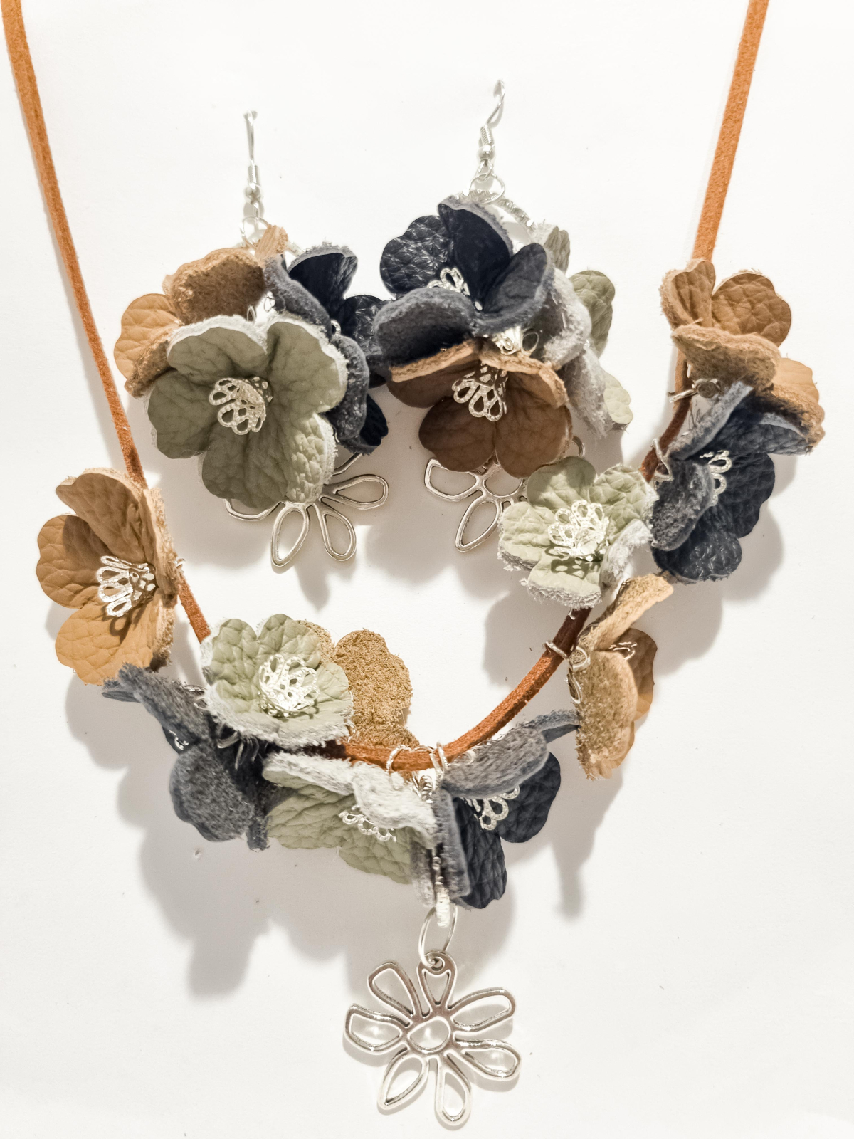 Set cercei cu pandant din piele naturala FLORI