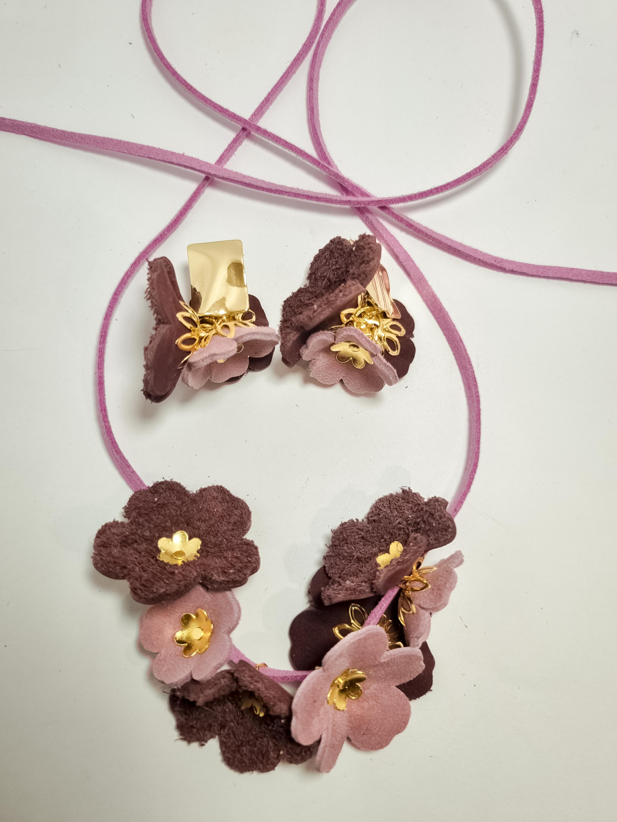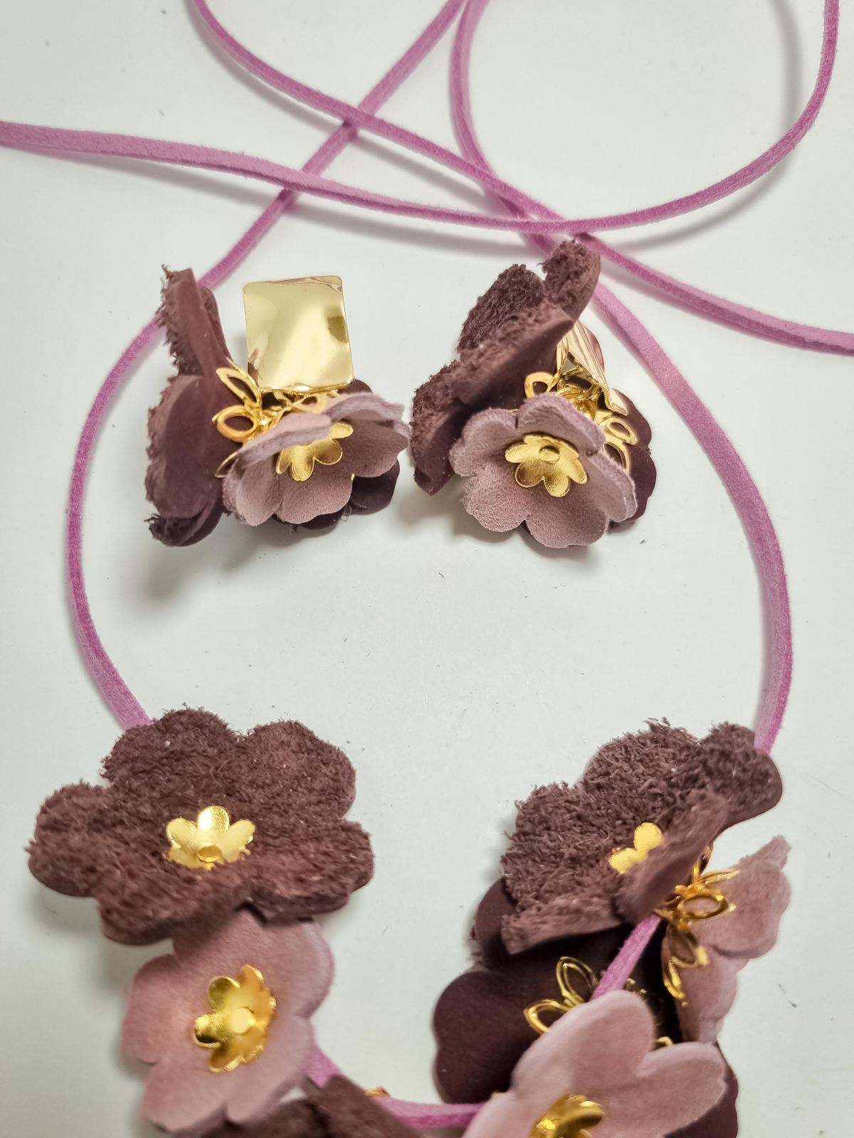 Set cercei cu pandant din piele naturala FLORI