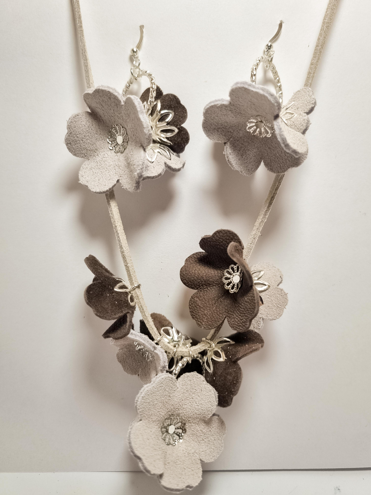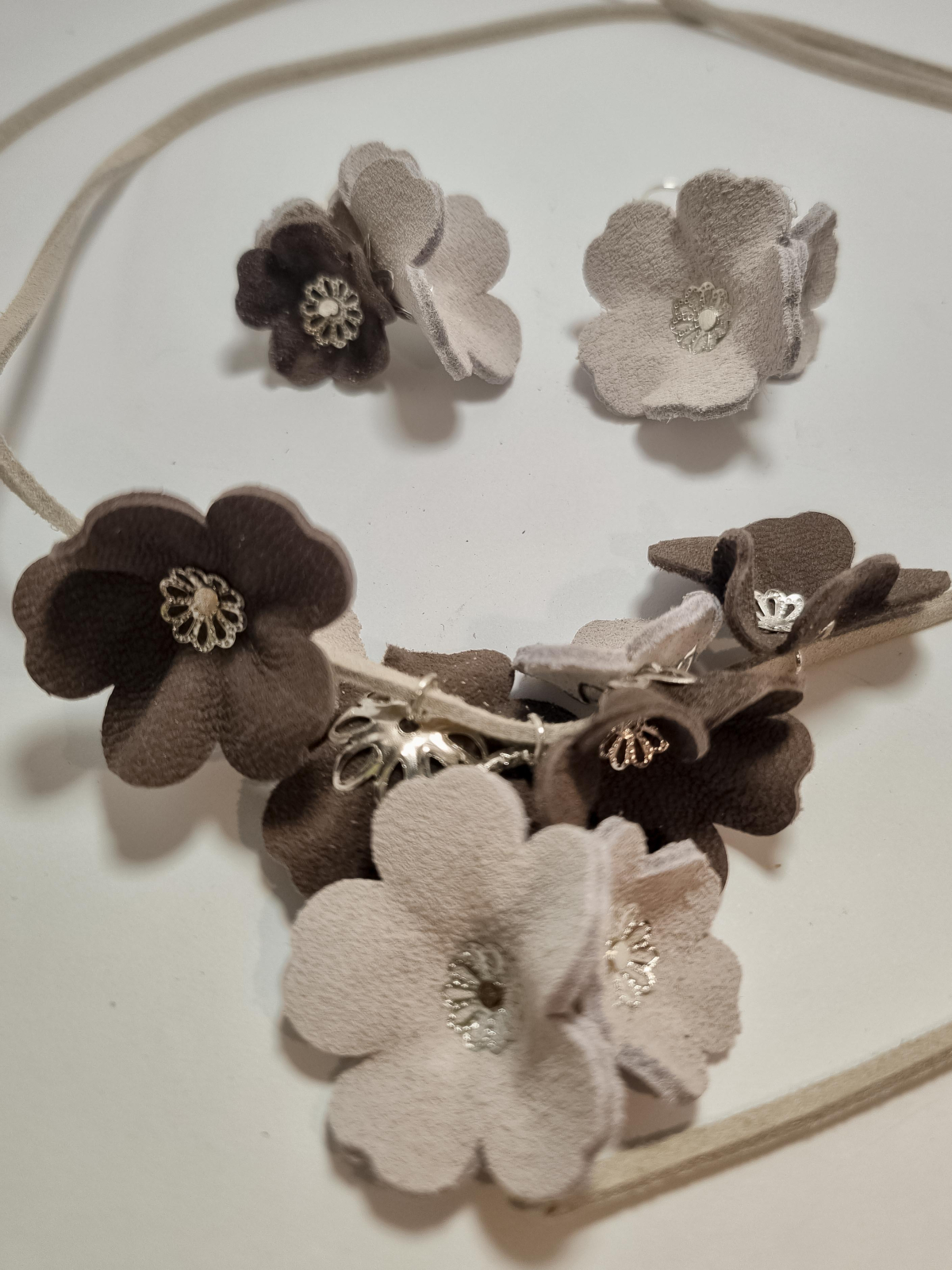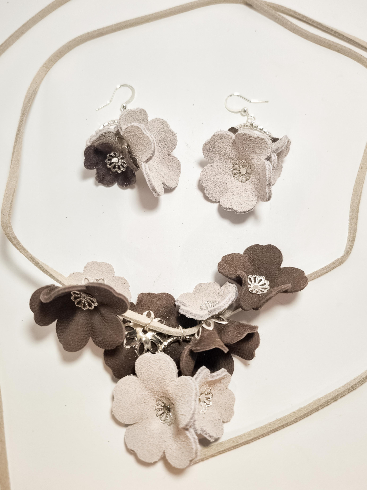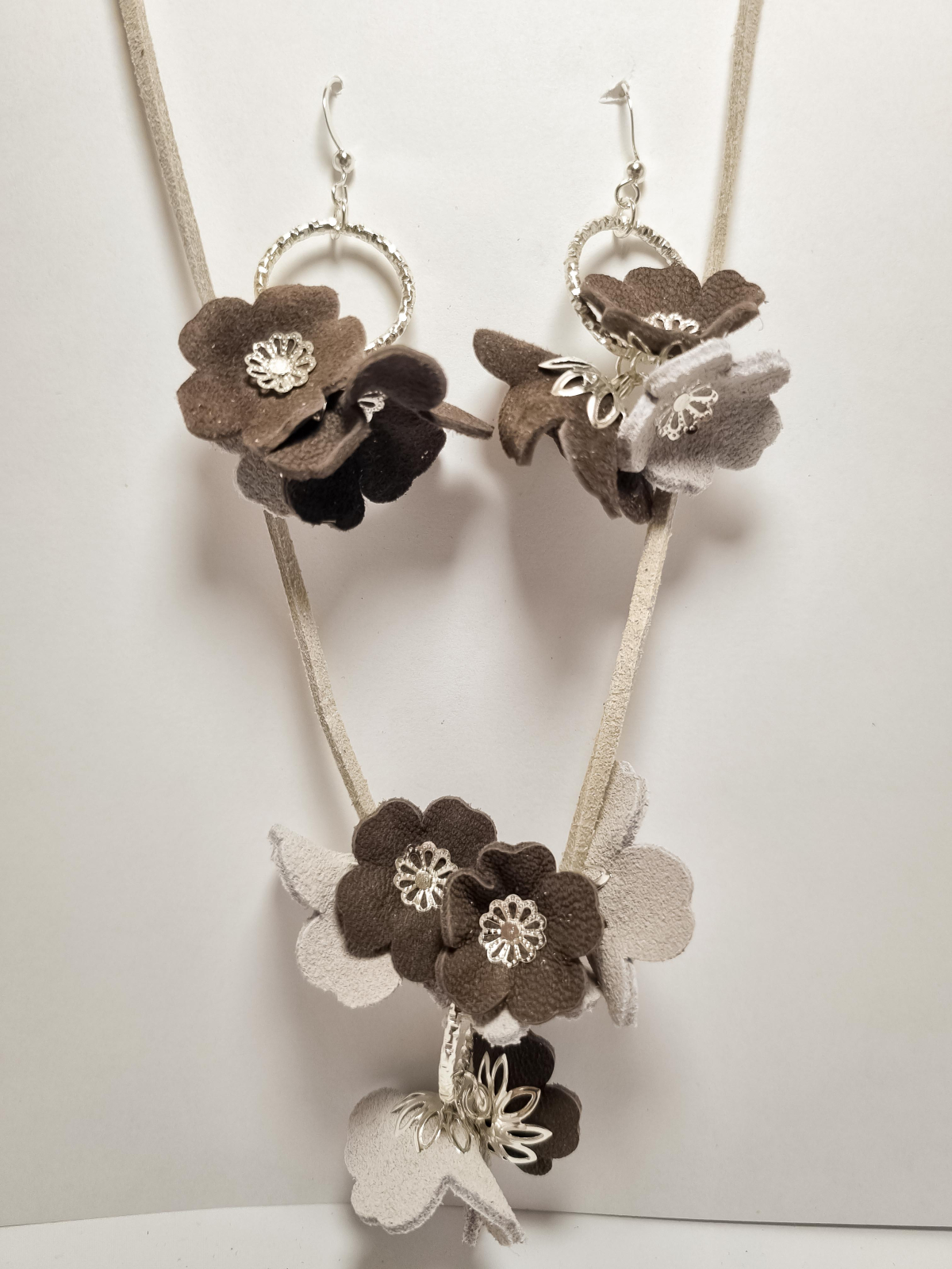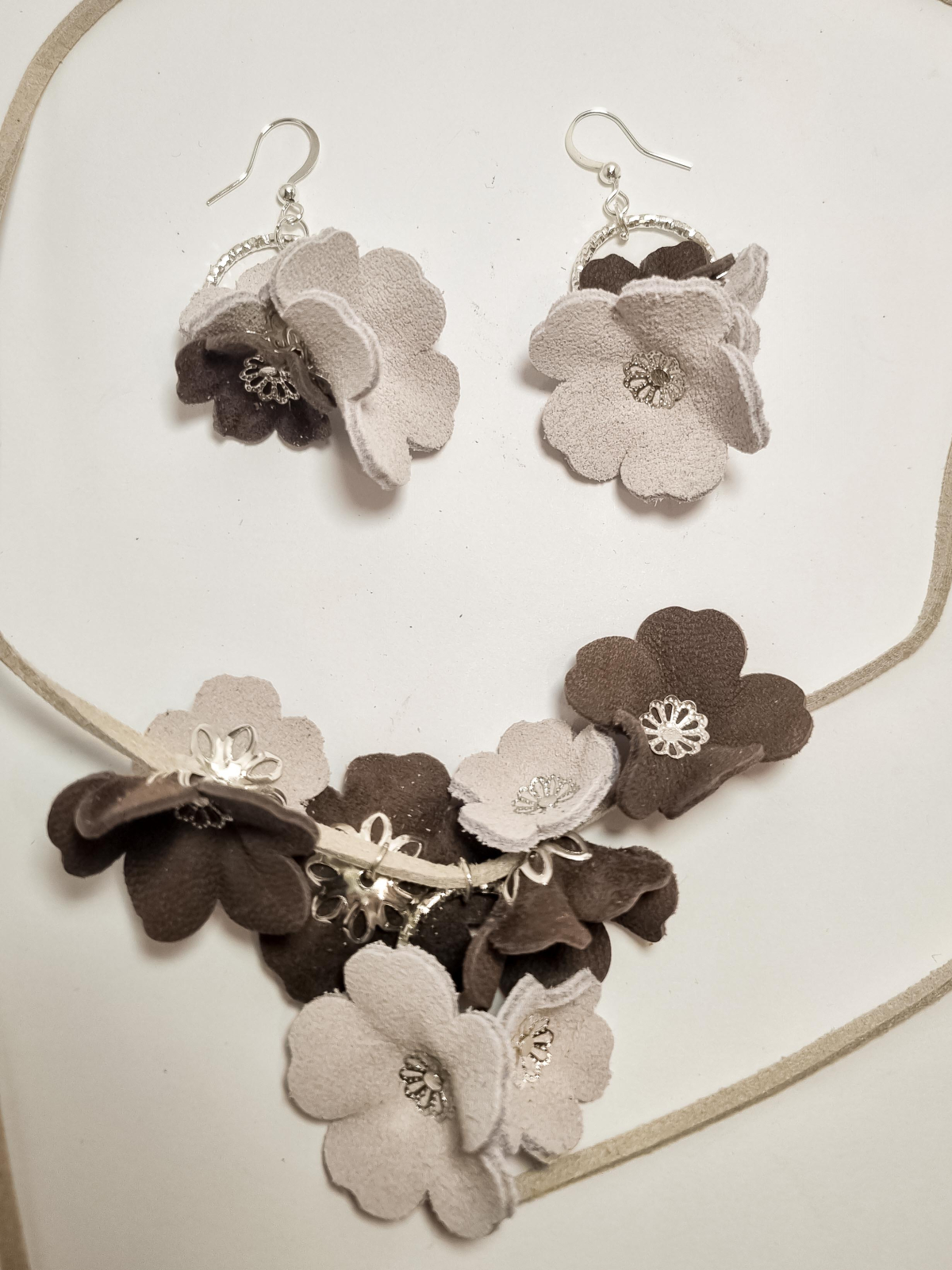 Set cercei cu pandant din piele naturala FLORI