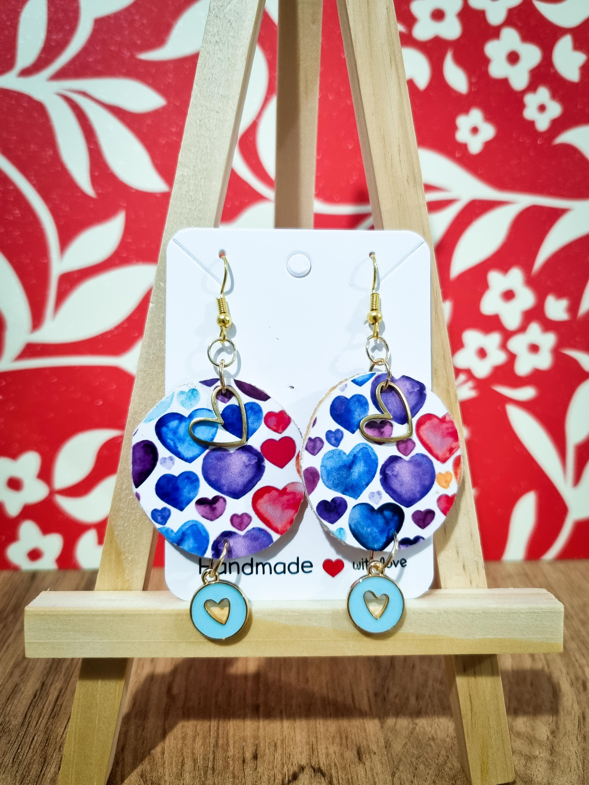 Cercei confectionati din piele ecologica si accesorii metalice hipoalergenice.
