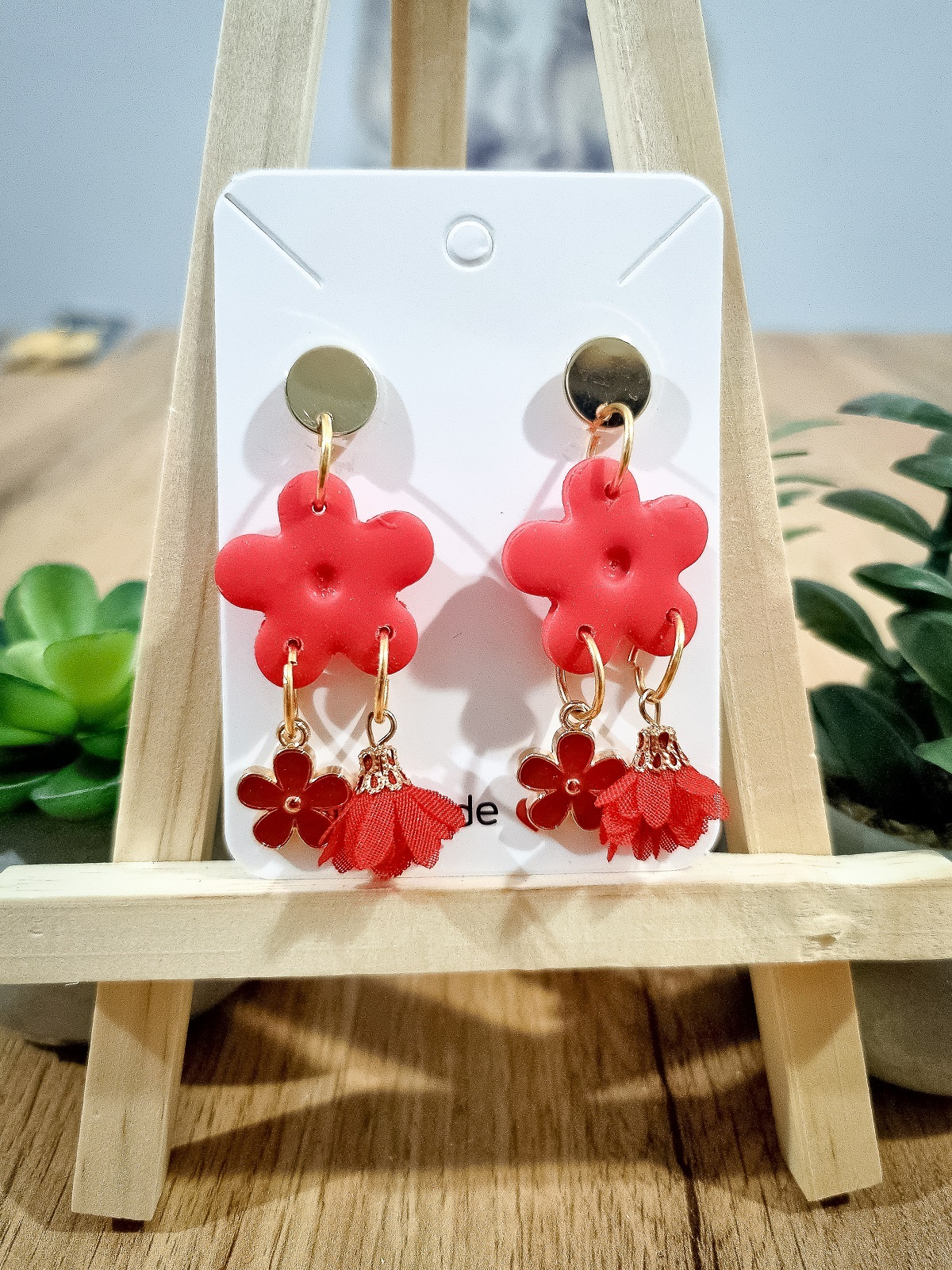 Cercei unicat confecționați din lut polimeric FIMO și accesorii metalice hipoalergenice.