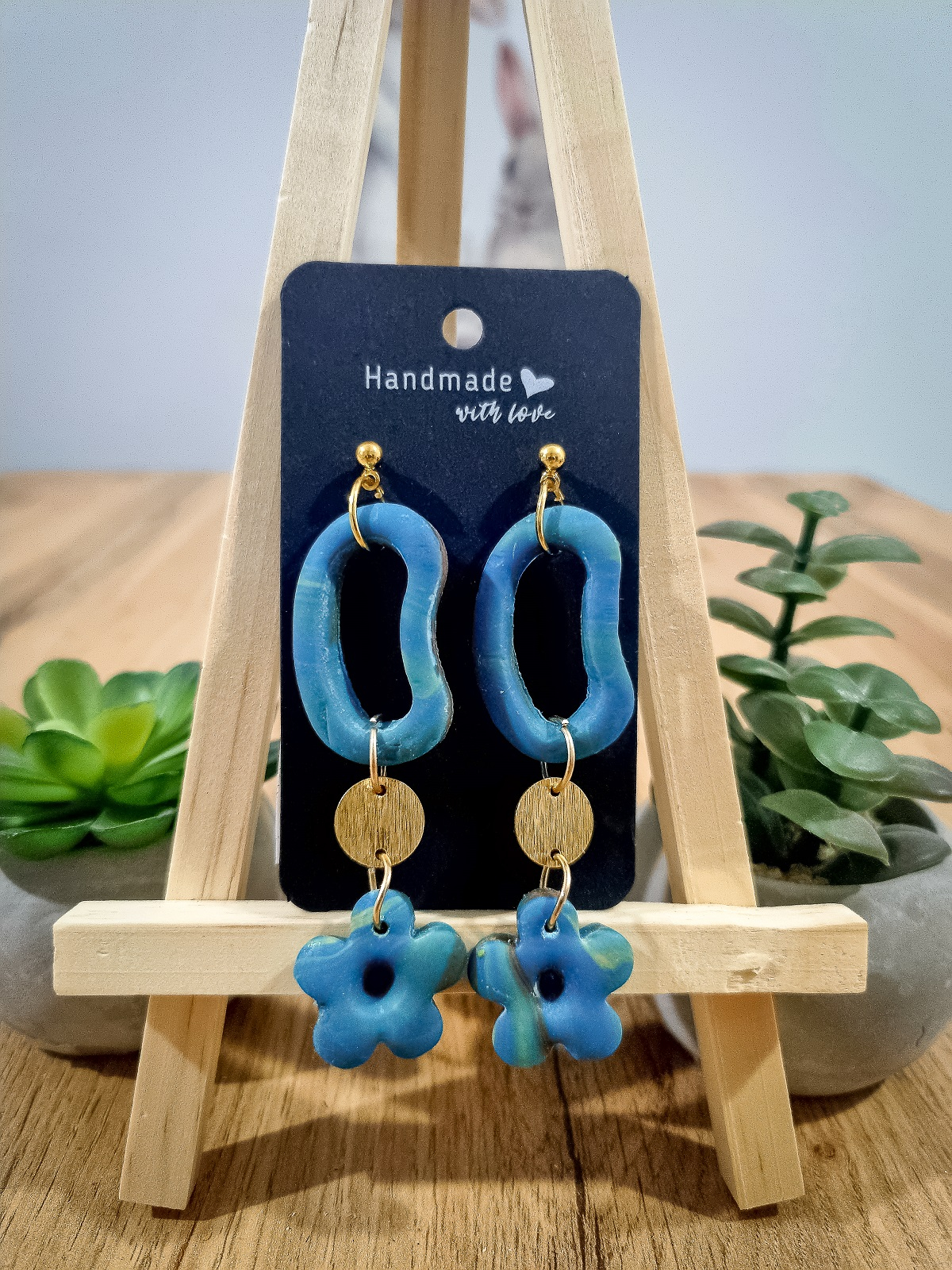 Cercei unicat confecționați din lut polimeric FIMO și accesorii metalice hipoalergenice.
