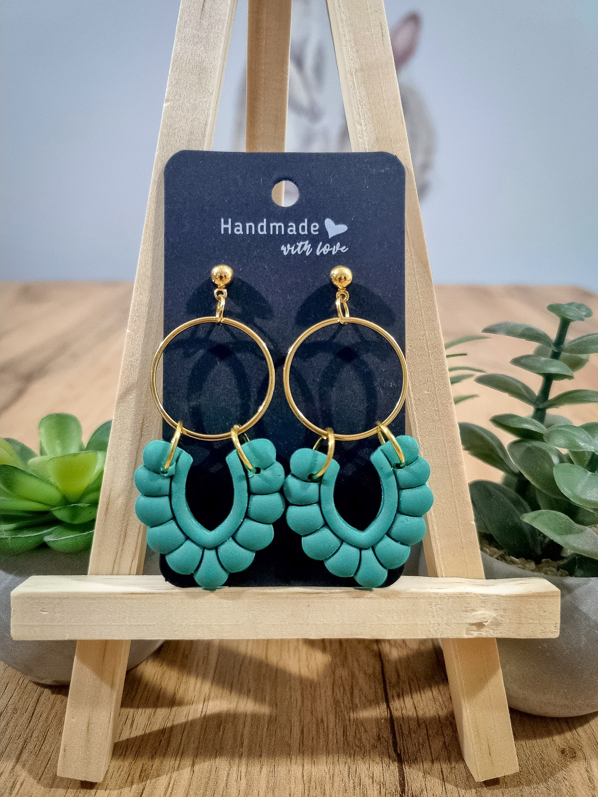 Cercei unicat confecționați din lut polimeric FIMO și accesorii metalice hipoalergenice.