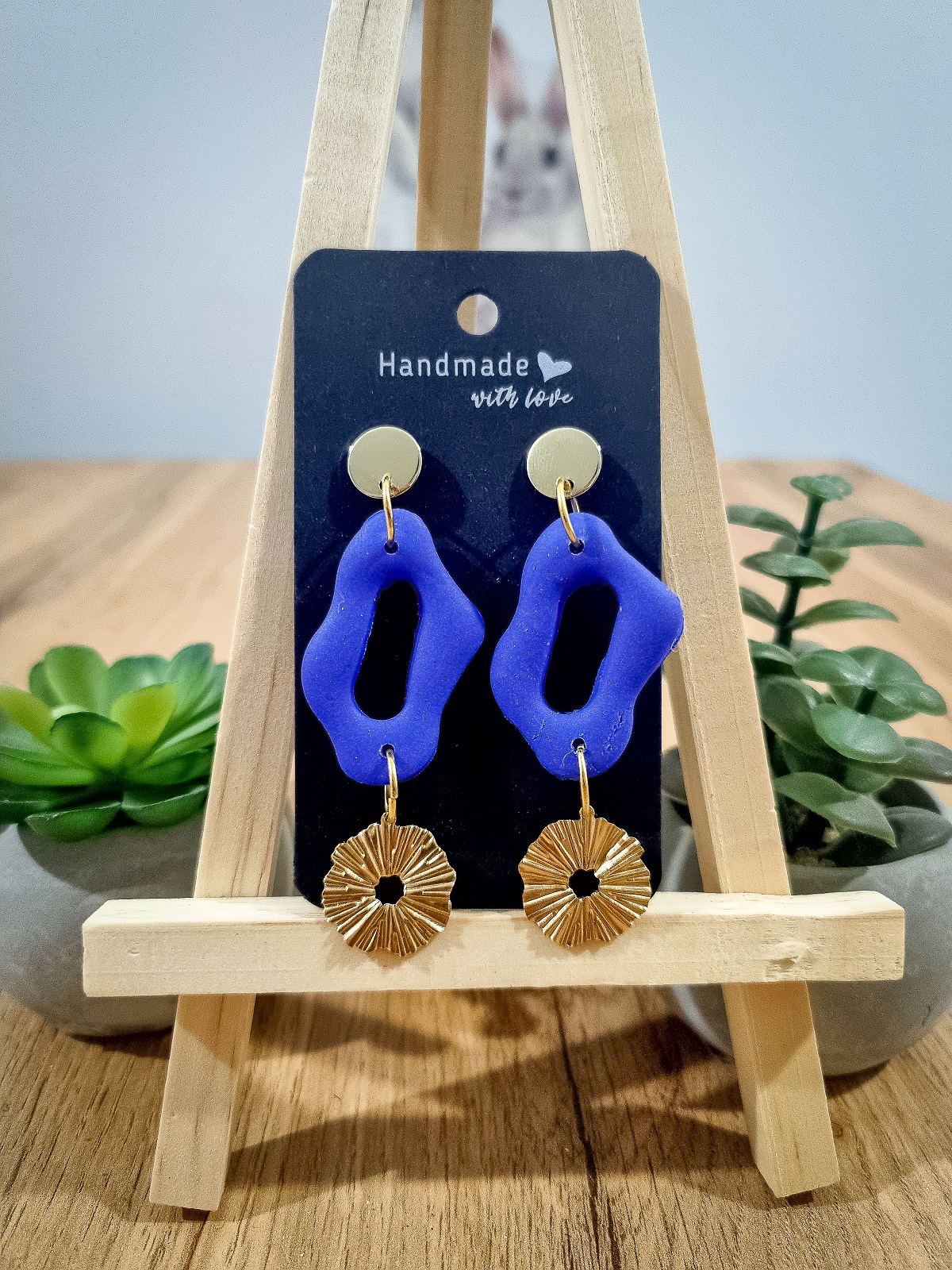 Cercei unicat confecționați din lut polimeric FIMO și accesorii metalice hipoalergenice.