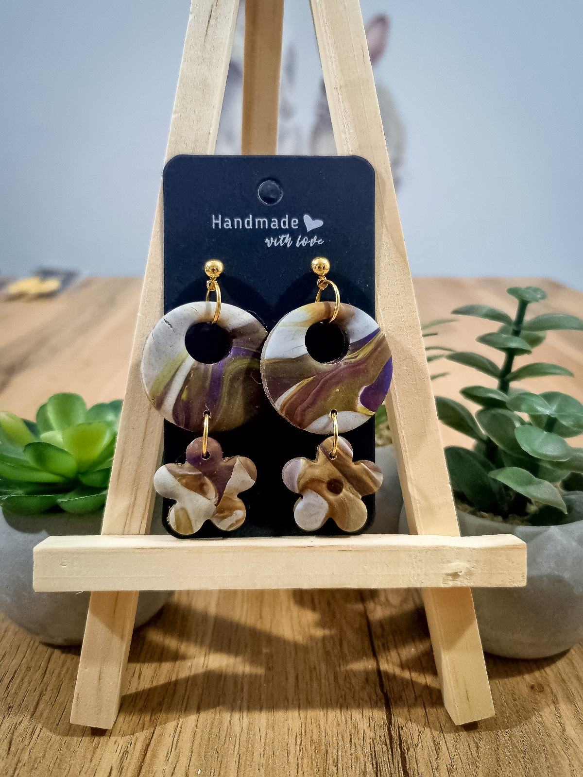 Cercei unicat confecționați din lut polimeric FIMO și accesorii metalice hipoalergenice.
