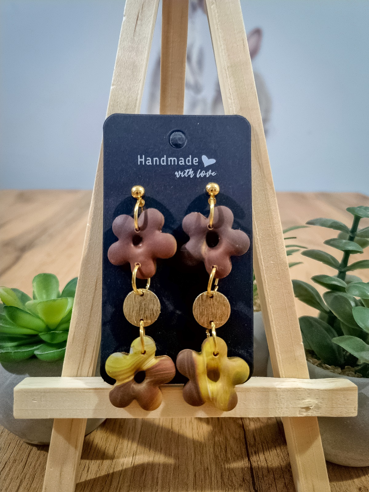 Cercei unicat confecționați din lut polimeric FIMO și accesorii metalice hipoalergenice.