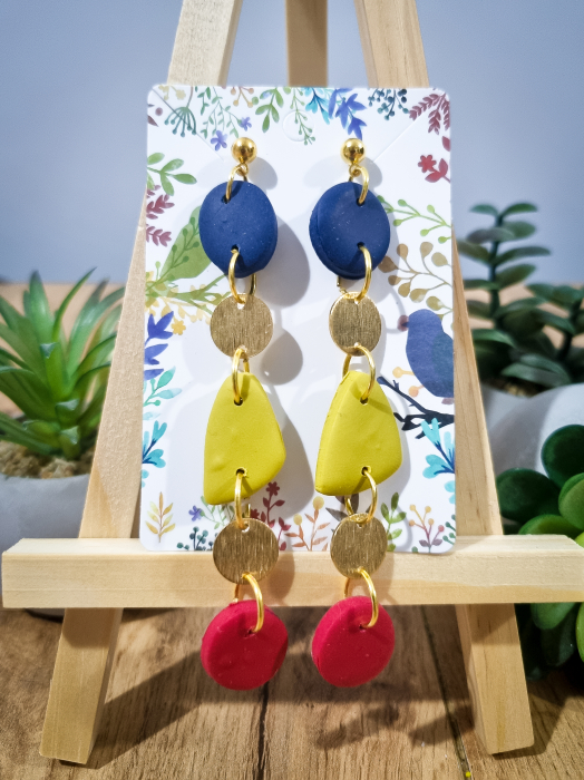 Cercei unicat confecționați din lut polimeric FIMO și accesorii metalice hipoalergenice.