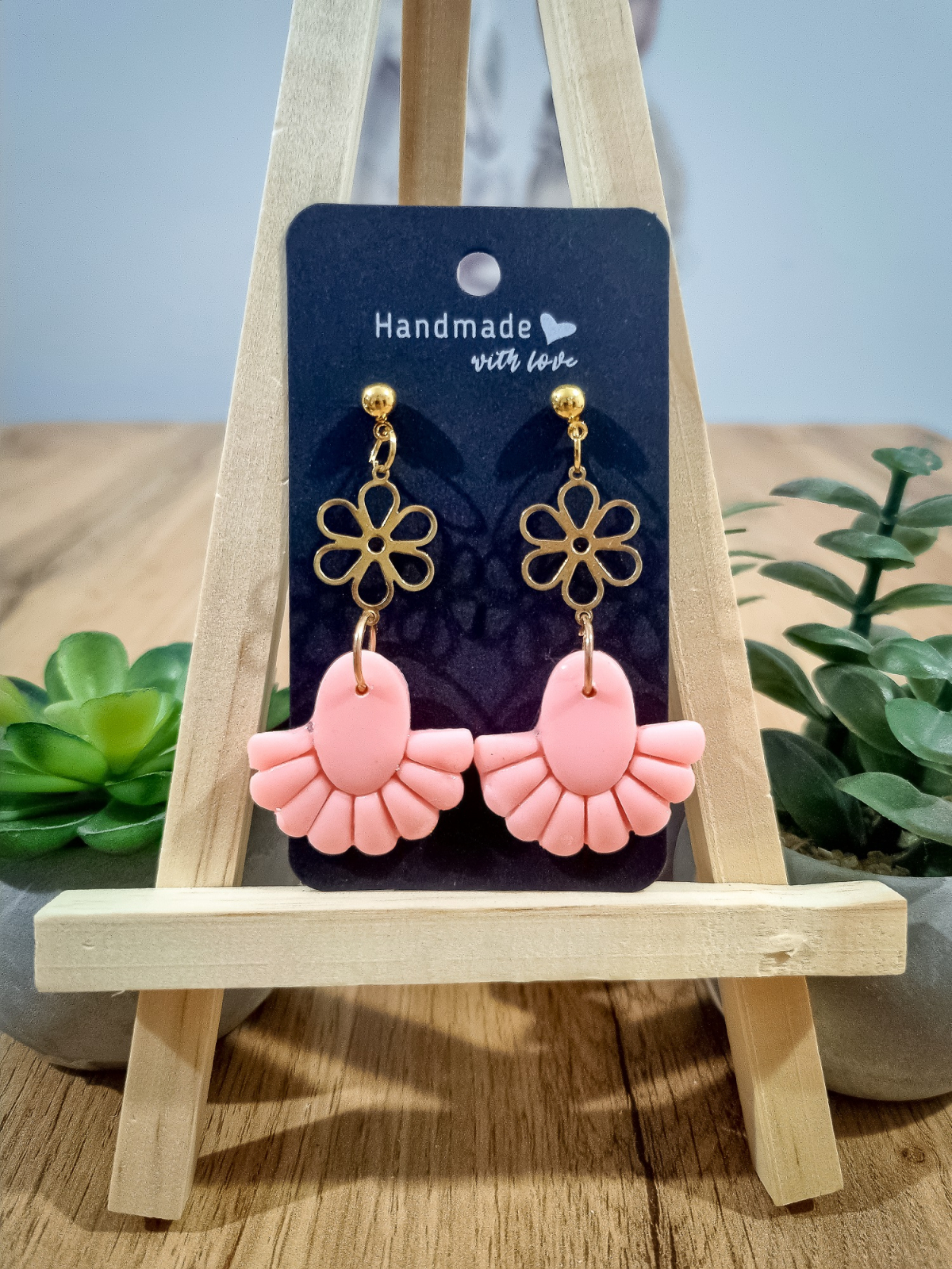 Cercei unicat confecționați din lut polimeric FIMO și accesorii metalice hipoalergenice.