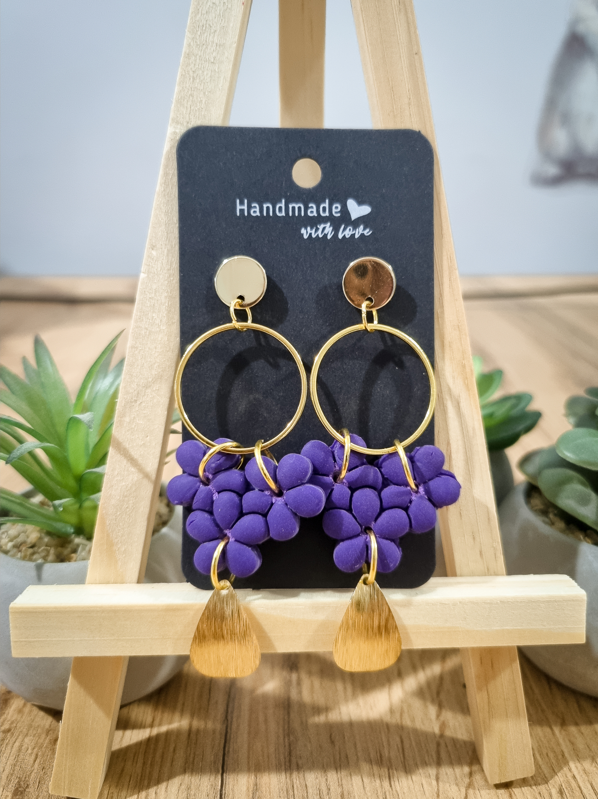 Cercei unicat confecționați din lut polimeric FIMO și accesorii metalice hipoalergenice.