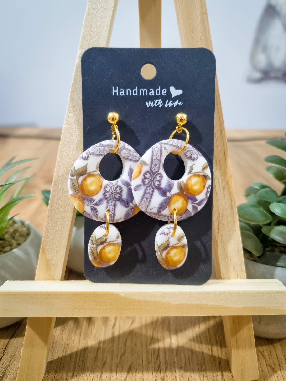 Cercei unicat confecționați din lut polimeric FIMO și accesorii metalice hipoalergenice.