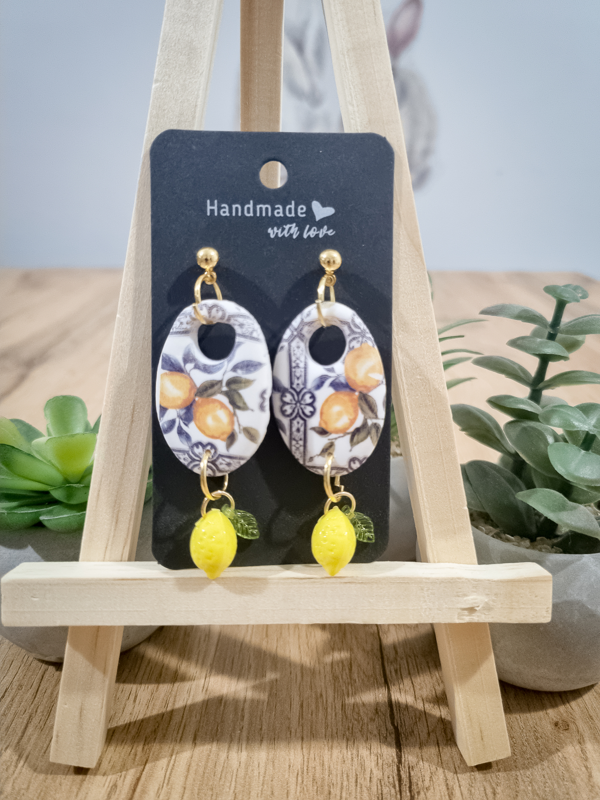 Cercei unicat confecționați din lut polimeric FIMO și accesorii metalice hipoalergenice.