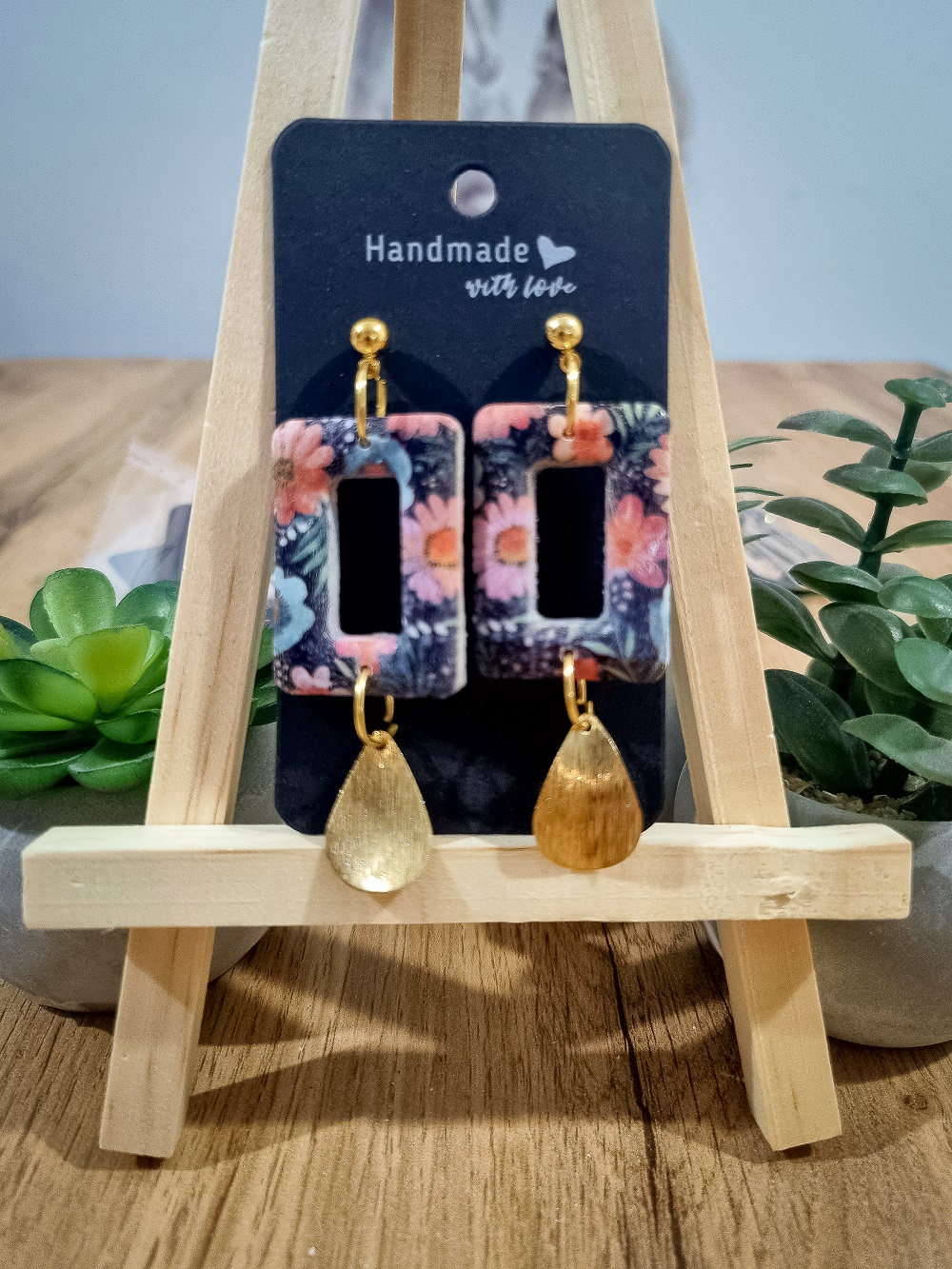 Cercei unicat confecționați din lut polimeric FIMO și accesorii metalice hipoalergenice.