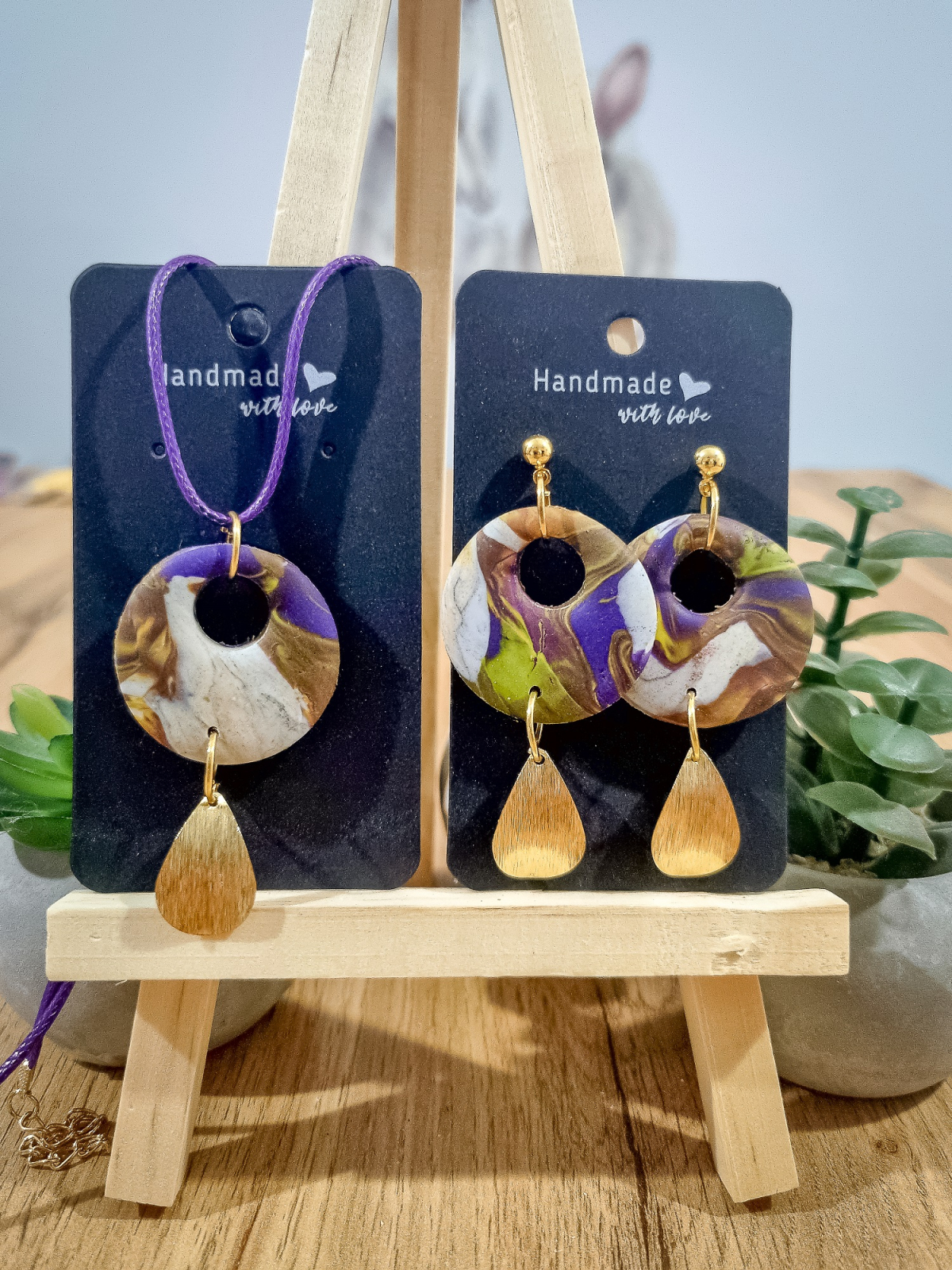 Cercei unicat confecționați din lut polimeric FIMO și accesorii metalice hipoalergenice.