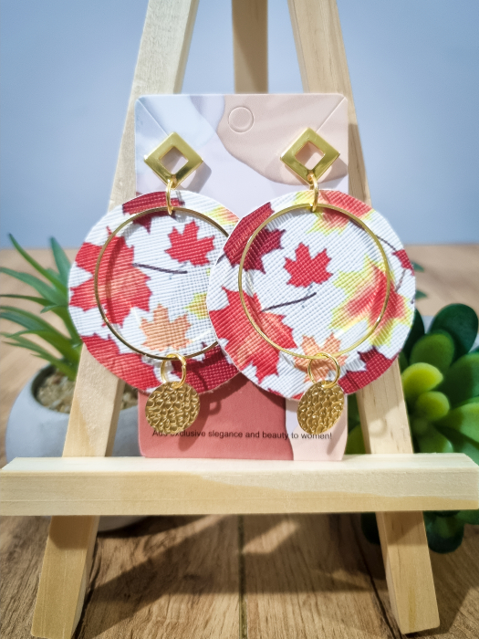 Cercei unicat confecționați din piele ecologica și accesorii metalice hipoalergenice.