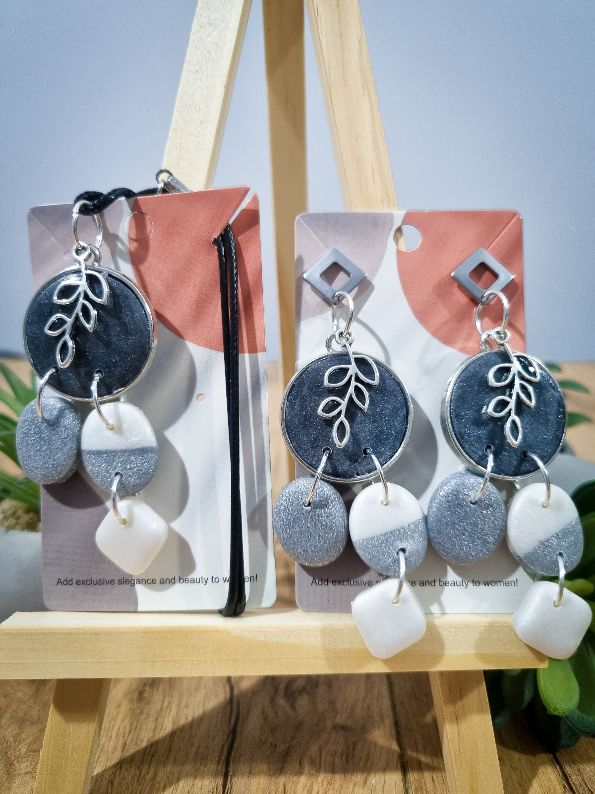 Cercei unicat confecționați din lut polimeric FIMO și accesorii metalice hipoalergenice.