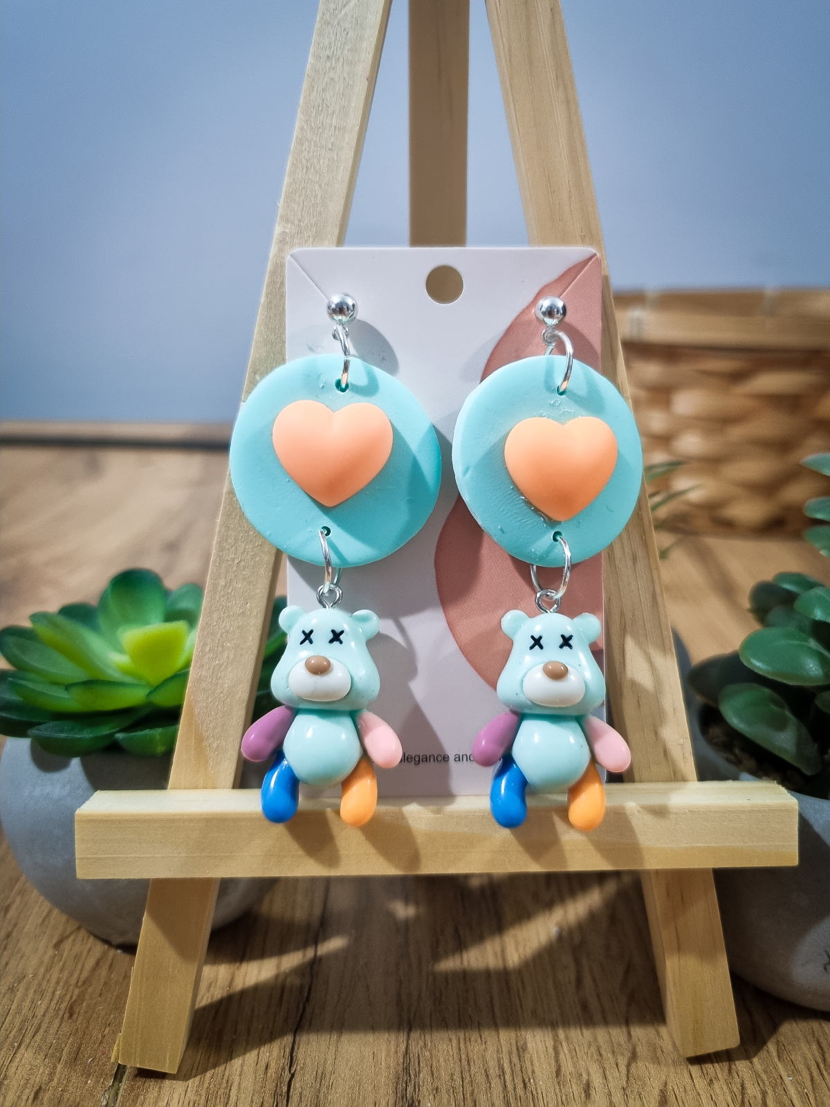 Cercei unicat confecționați din lut polimeric FIMO și accesorii metalice hipoalergenice.